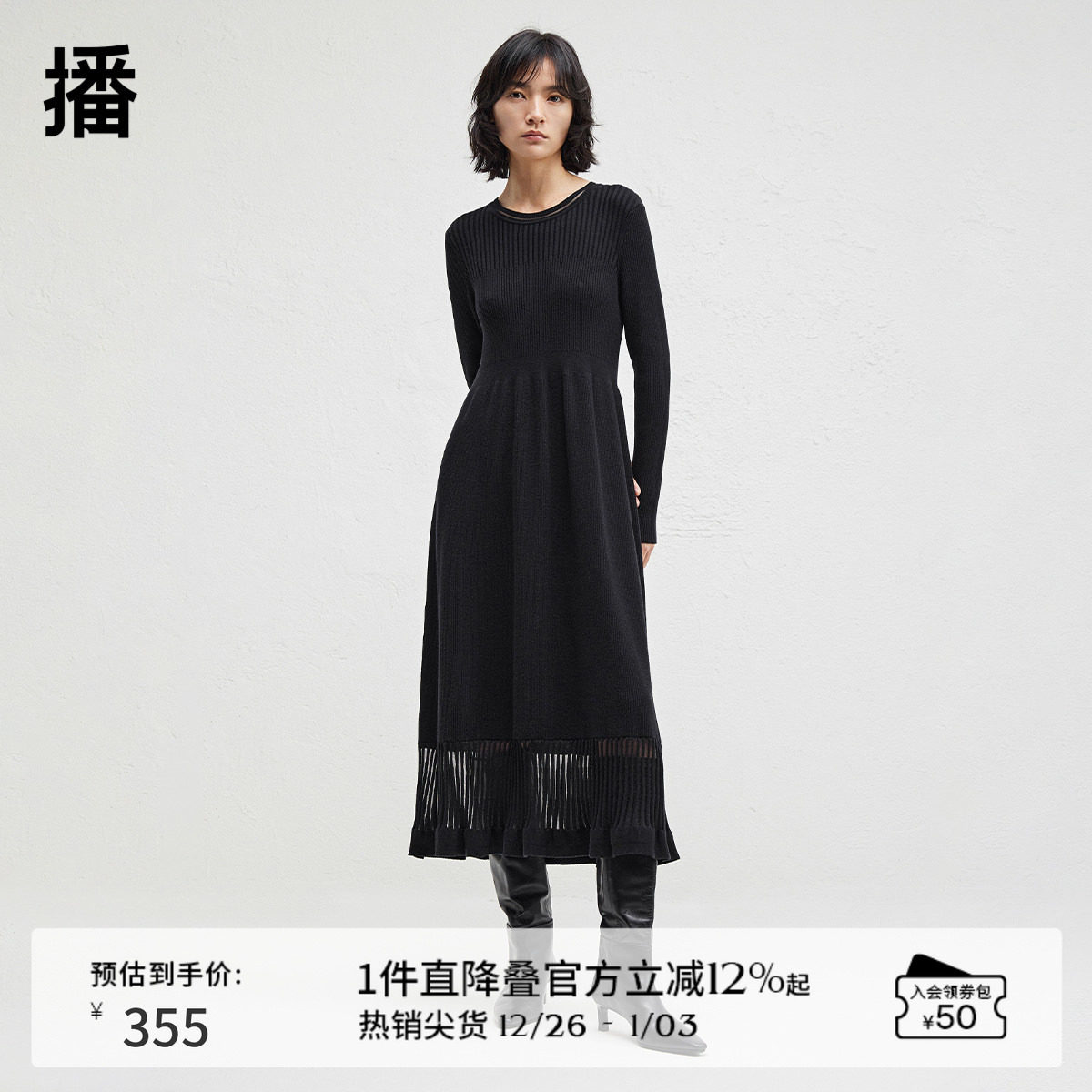 播黑色中长款修身打底针织连衣裙女冬高腰显瘦长裙DDR4LD5069
