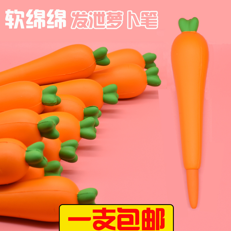 创意可爱软绵绵胡萝卜中性笔0.5 学生卡通手捏发泄解压碳素笔水笔