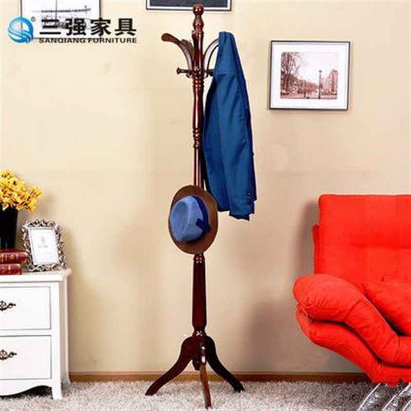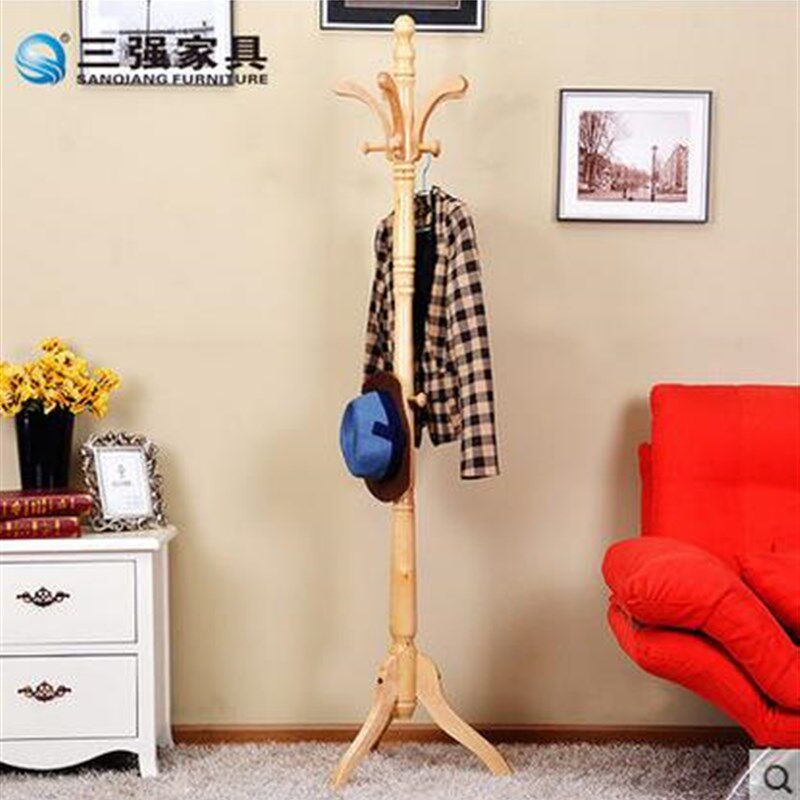 新款邮三强81时尚创意环衣保实木衣帽架落地式卧室内立式晾包衣9