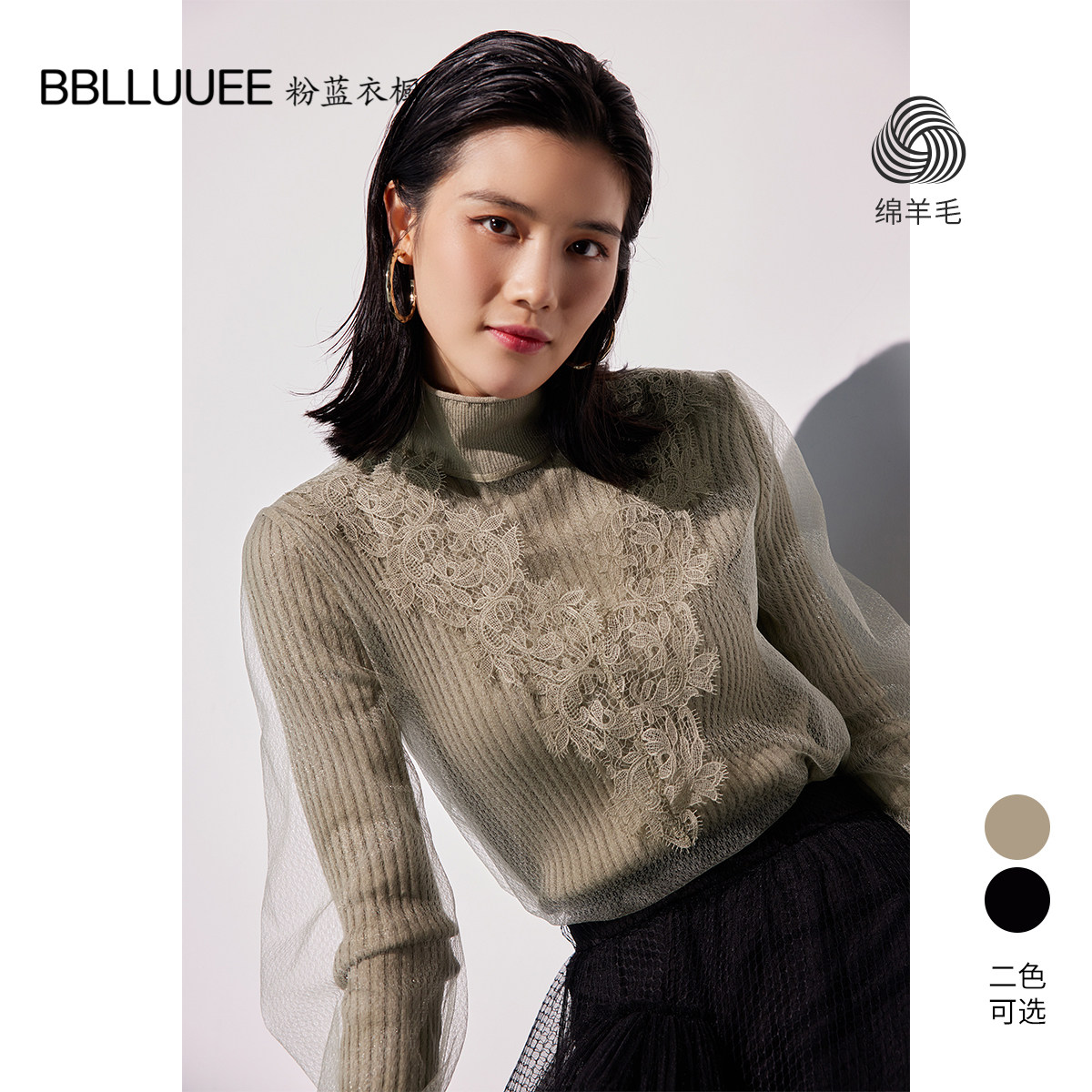 - 蕾丝毛衣套头女