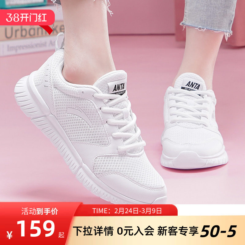 安踏运动鞋女鞋春季新款官网正品白色网面透气软底不累脚跑步鞋子