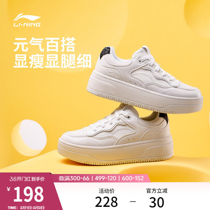 李宁奶酪2丨休闲鞋女鞋百搭新款鞋子厚底板鞋增高白色运动鞋女款