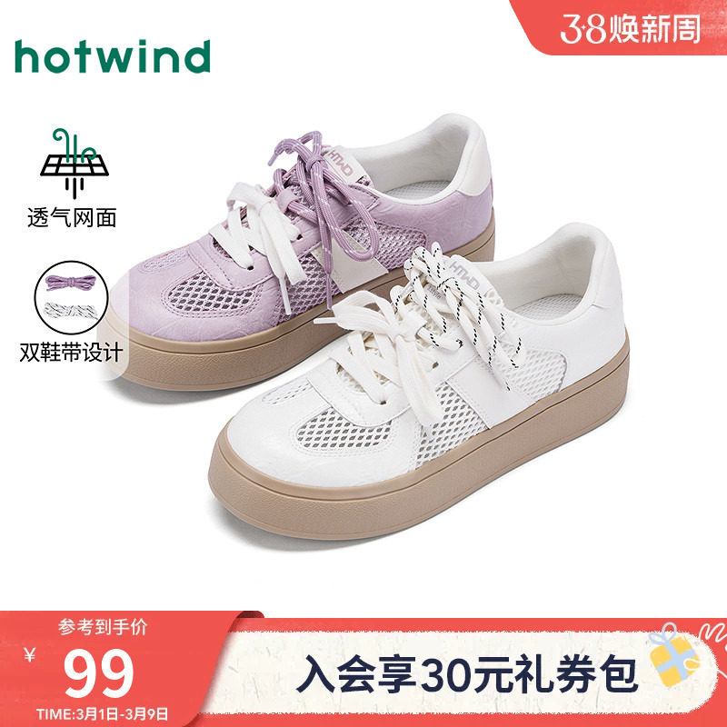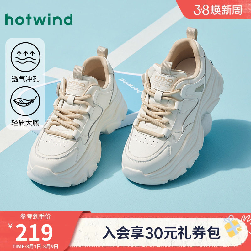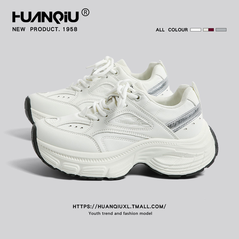 热风白色老爹鞋女2026年春季新款厚底运动休闲鞋女鞋子H42W25110