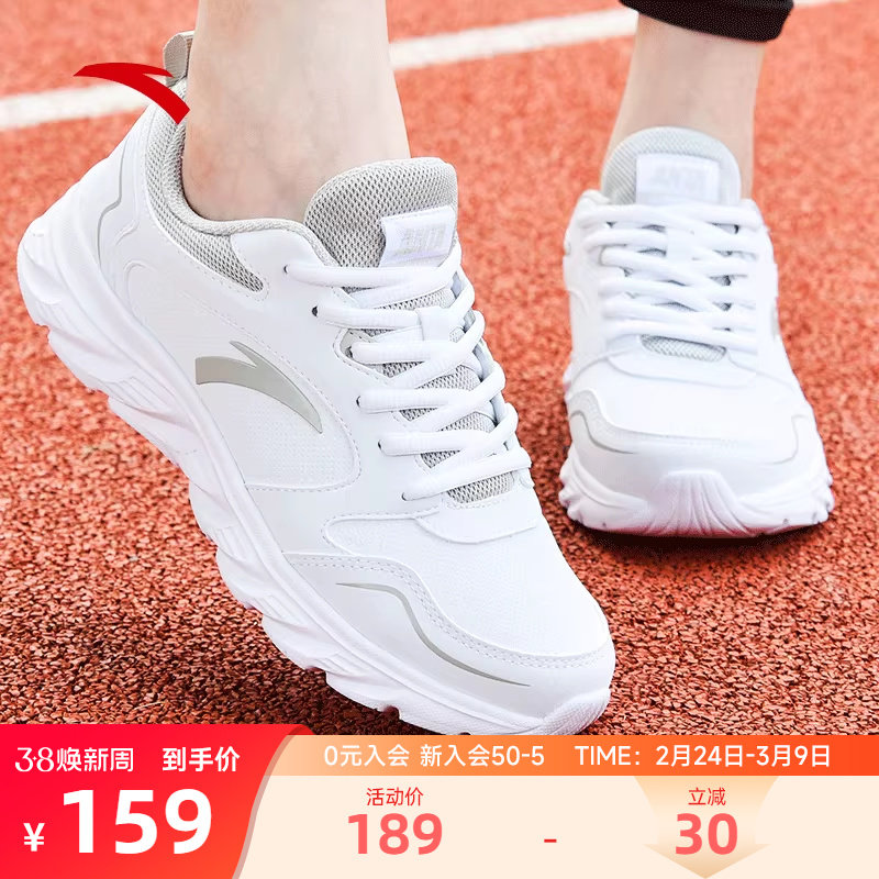 安踏女鞋运动鞋皮面防水2026新款轻便减震跑步鞋女款白色休闲鞋子