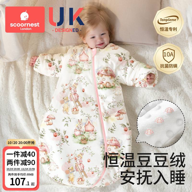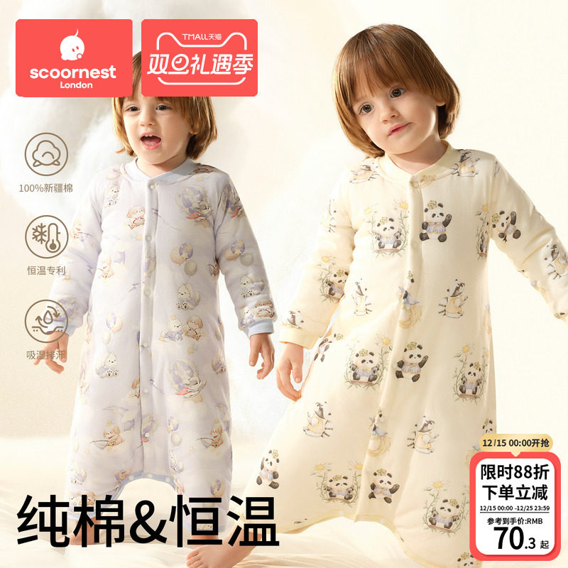 全棉时代婴儿睡袋秋冬款加厚纯棉分腿睡袋儿童宝宝防踢被子防惊跳