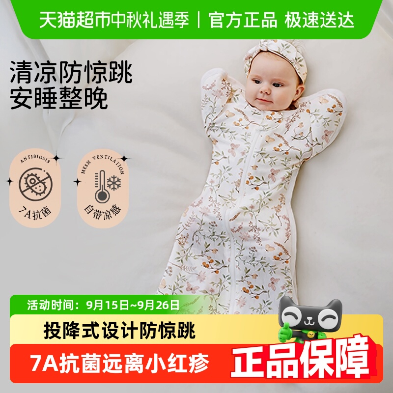 婧麒婴儿睡袋夏薄款防惊跳包巾包被小月龄宝宝防惊跳神器睡觉秋季