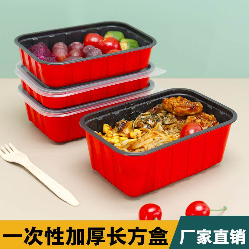 一次性长方形打包盒外卖红色快餐盒饭盒便当盒带盖塑料餐盒可微波