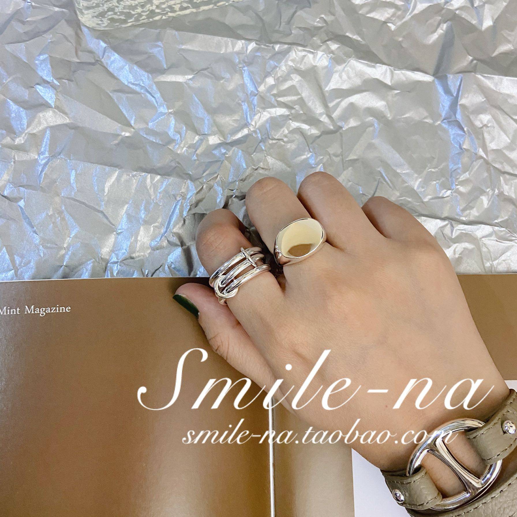 韩国进口小众设计师款925纯银MONA同款椭圆形光面夸张戒指指环