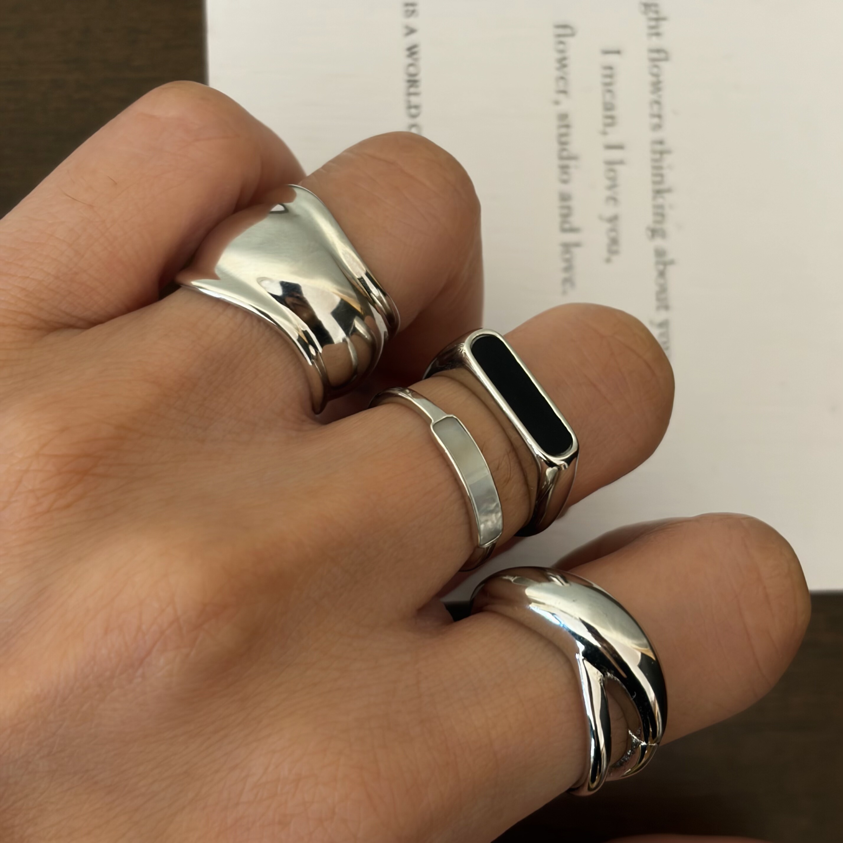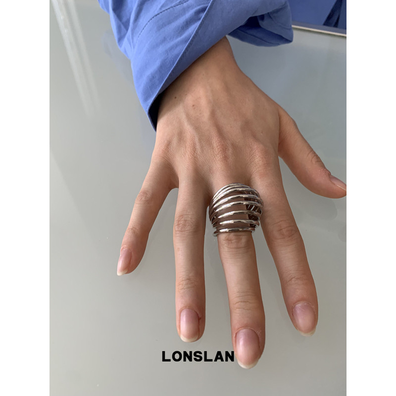 LONSLAN ACC 秋冬小众设计银色多层线条镂空夸张戒指百搭时尚