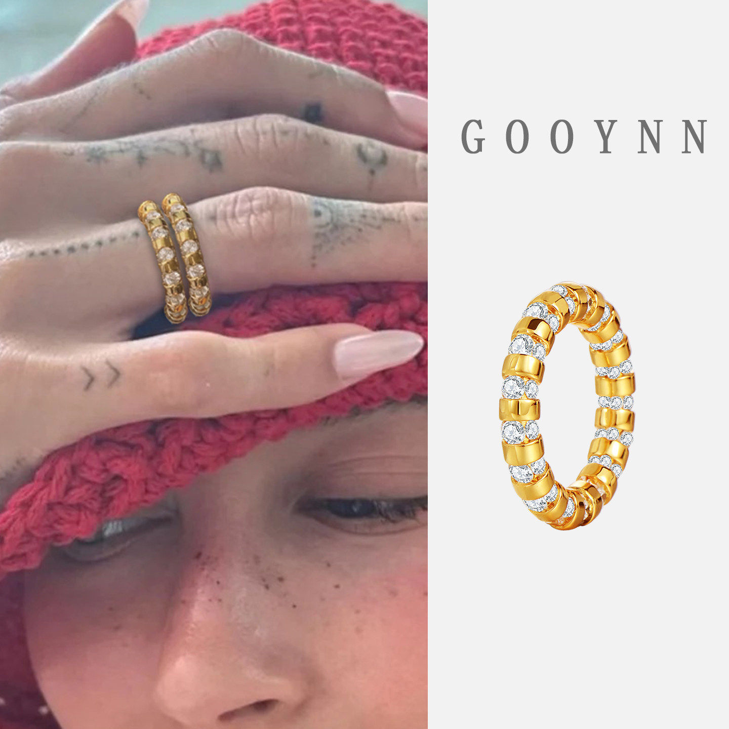 金色锆石开口戒指女款轻奢小众设计高级感食指戒夸张叠戴组合配饰