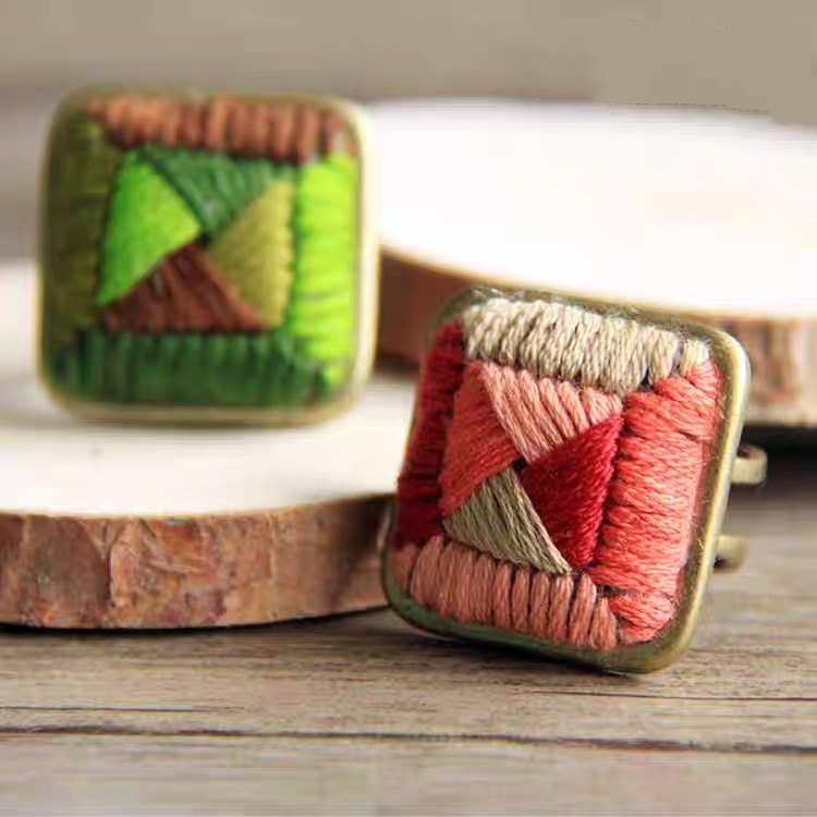 甄姑娘的店纯手工刺绣原创设计handmade转运风车图案夸张戒指