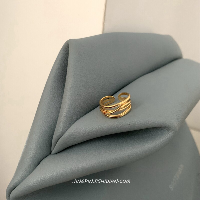 晶品欧美风轻奢高级感小众设计不规则多层缠绕金色随形夸张戒指女
