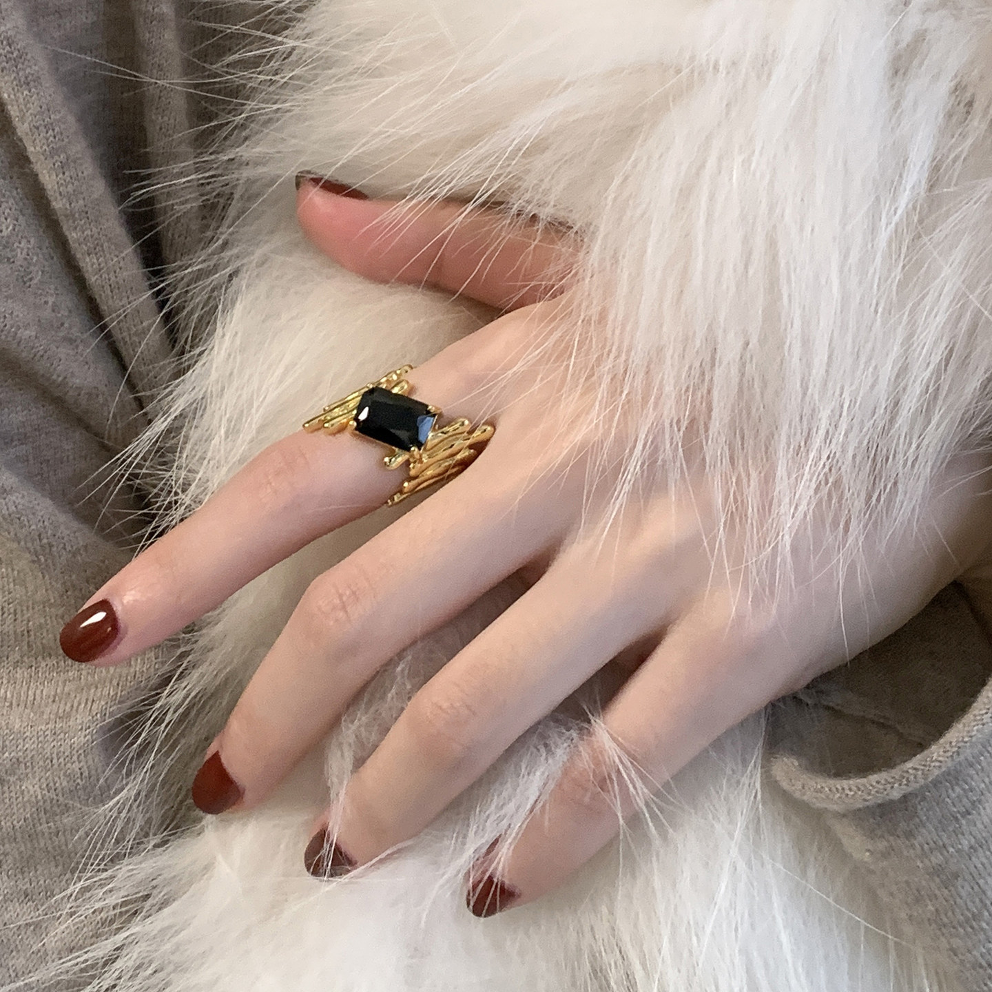 迷度小众设计轻奢夸张戒指女款复古方形开口指环可调节高级感个性