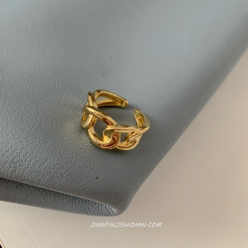 晶品纯黄铜不褪色随形不规则链条开口简约时髦潮人金色夸张戒指女