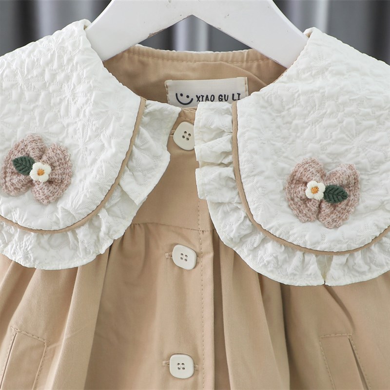 女宝宝春装外套洋气韩版中长款婴儿花边领上衣时髦小童休闲小风衣