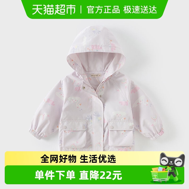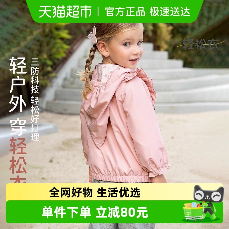 戴维贝拉儿童三防外套2025春装新款女童连帽上衣女宝宝户外防风衣