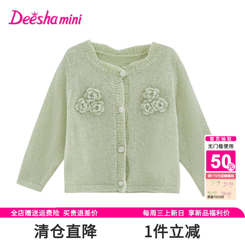 笛莎童装女童外套春装新款女宝宝儿童小童小女孩针织开衫春秋迪莎