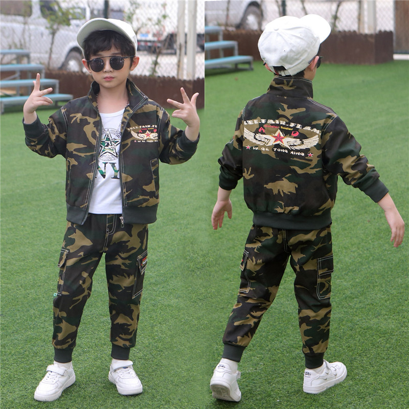 帅气儿童迷彩服套装男女童春秋装中大童三件套洋气学生军训迷彩服