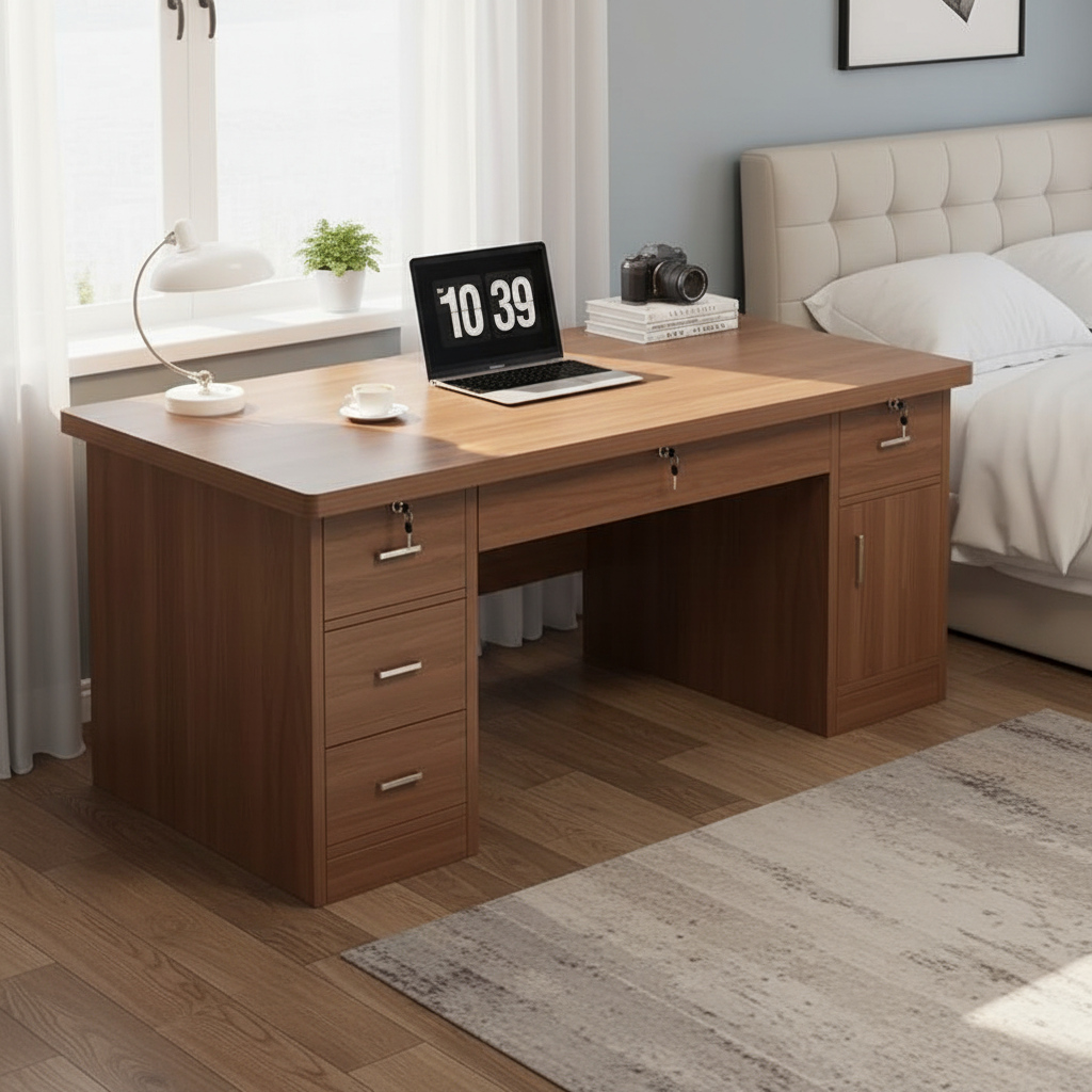 新中式职员办公室电脑桌台式带锁抽屉财务桌简约现代家用写字书桌