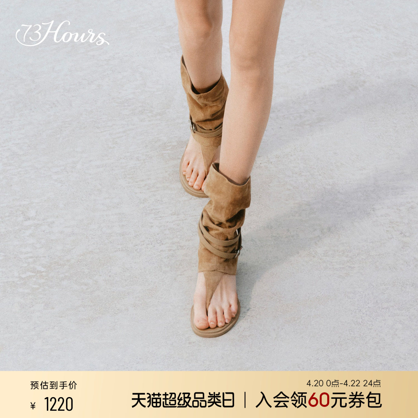 73hours女鞋超模氛围2026夏新款波西米亚风夹趾堆堆凉靴厚底凉鞋