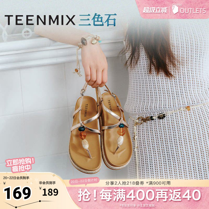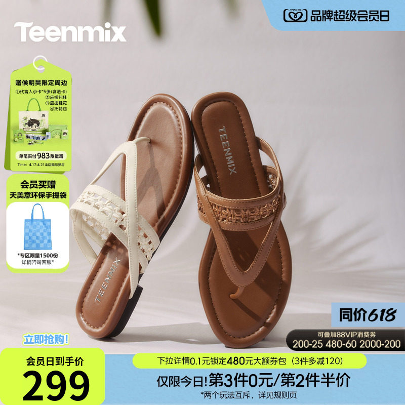 天美意人字拖复古海边度假平底拖鞋女凉拖夹趾时装凉鞋2026夏新款
