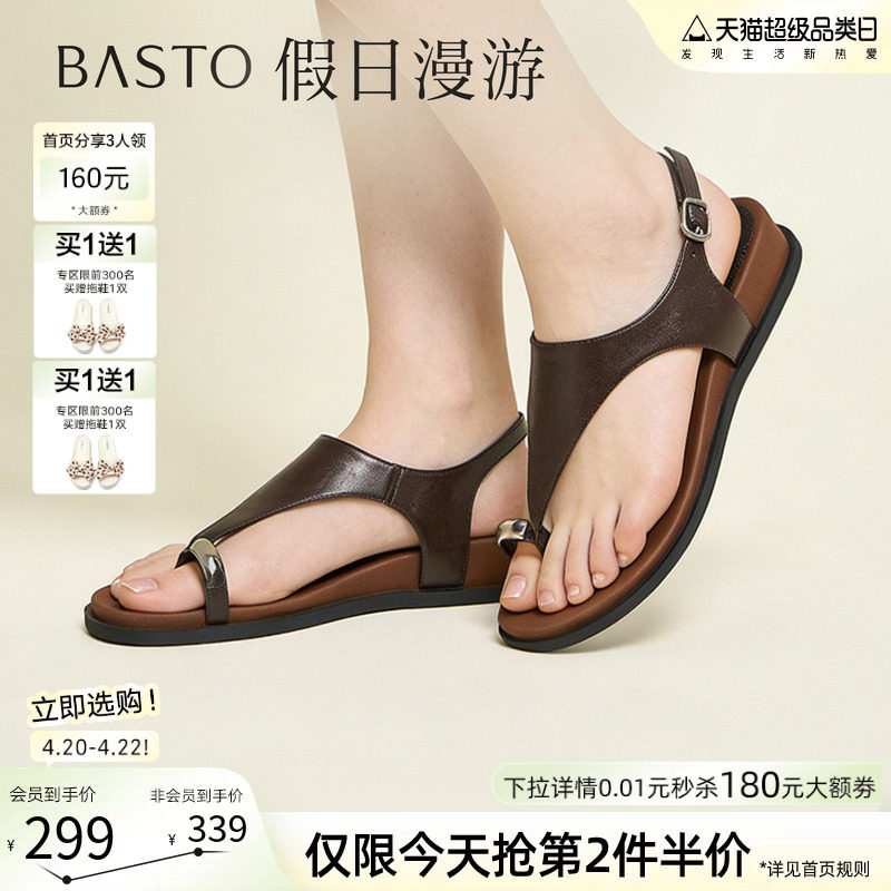 【小彩旗】百思图夏季新款休闲厚底夹趾外穿女罗马凉鞋B5725BL5
