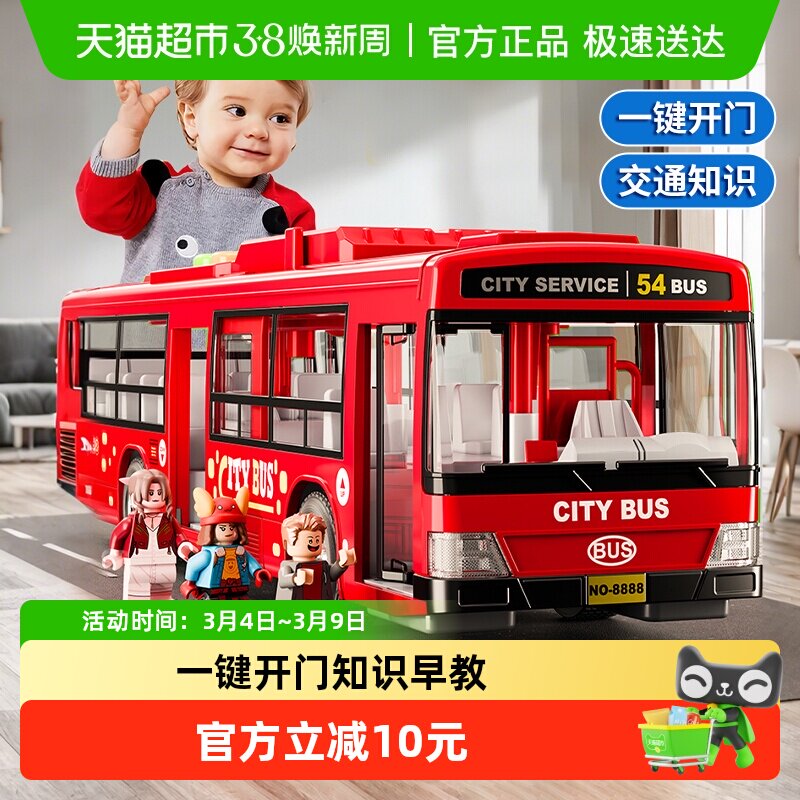 儿童公交车玩具车可开门超大号仿真宝宝巴士公共汽车模型男孩女孩