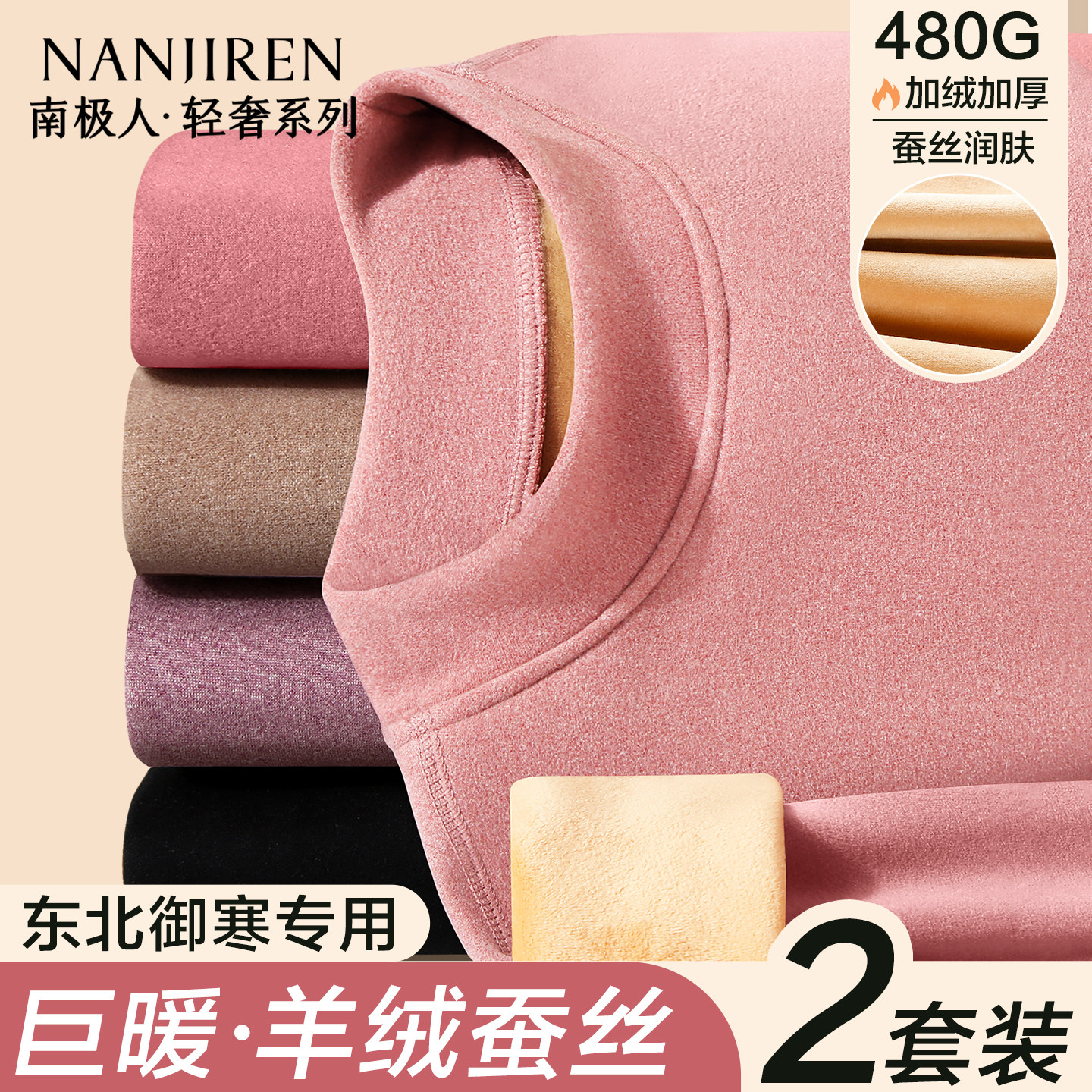 保暖内衣女抗菌加绒加厚羊绒蚕丝秋衣秋裤男士德绒无痕打底衣套装