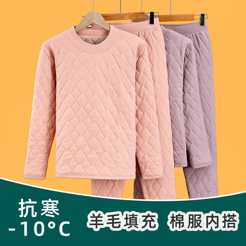 南极人保暖内衣女士加绒加厚东北防寒含羊绒套装打底秋衣秋裤冬季