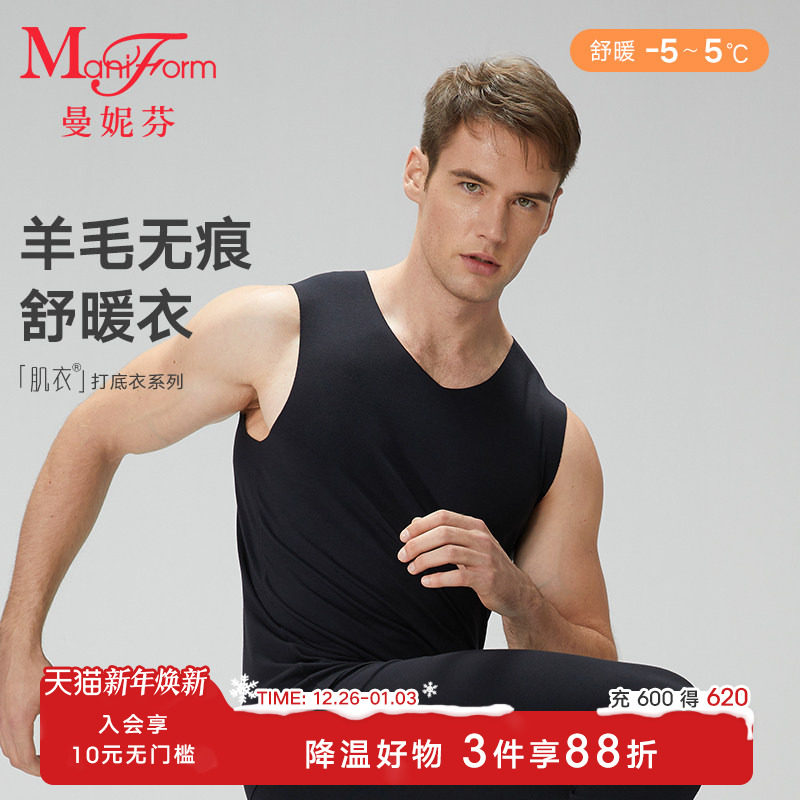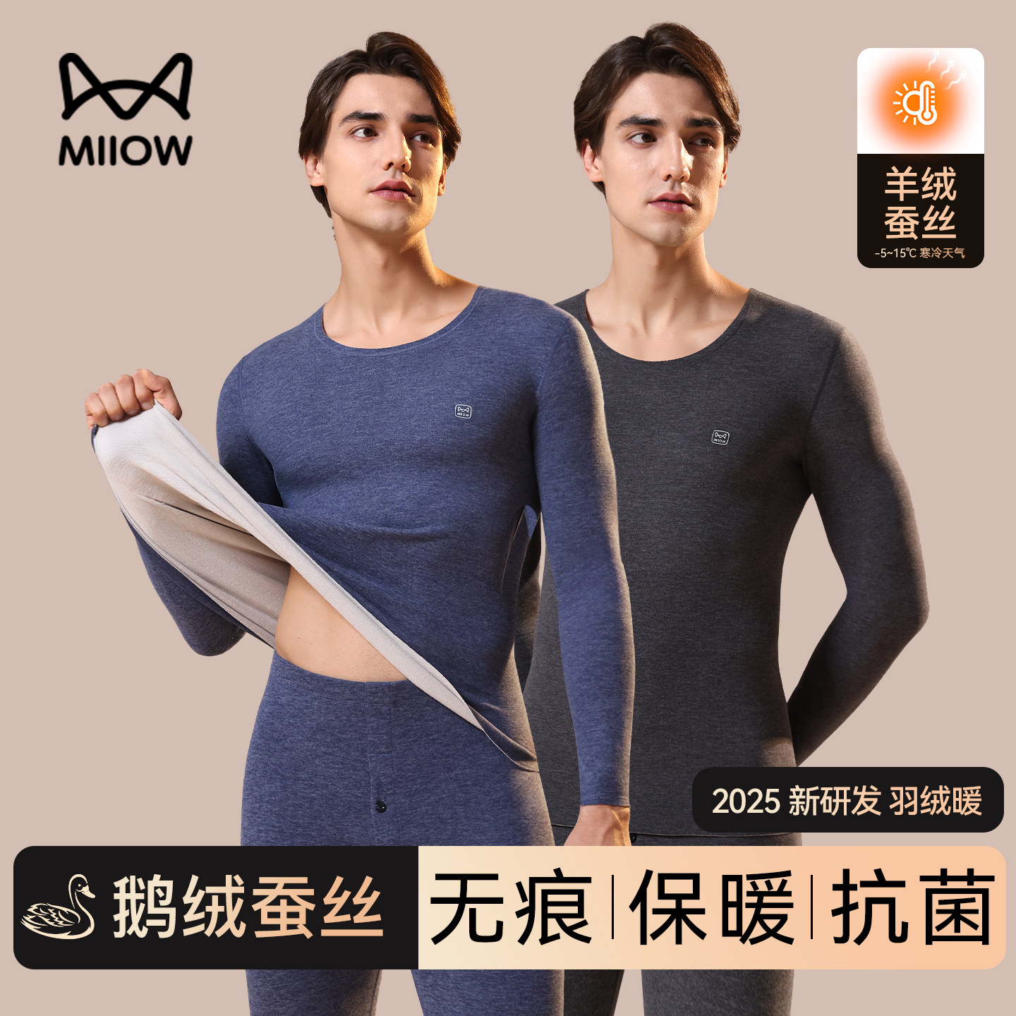 猫人保暖内衣上衣男款冬季羊绒蚕丝无痕发热保温打底秋衣秋裤套装