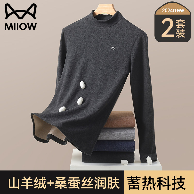猫人男士中高领保暖内衣加厚德绒发热2025年冬季打底秋衣秋裤套装