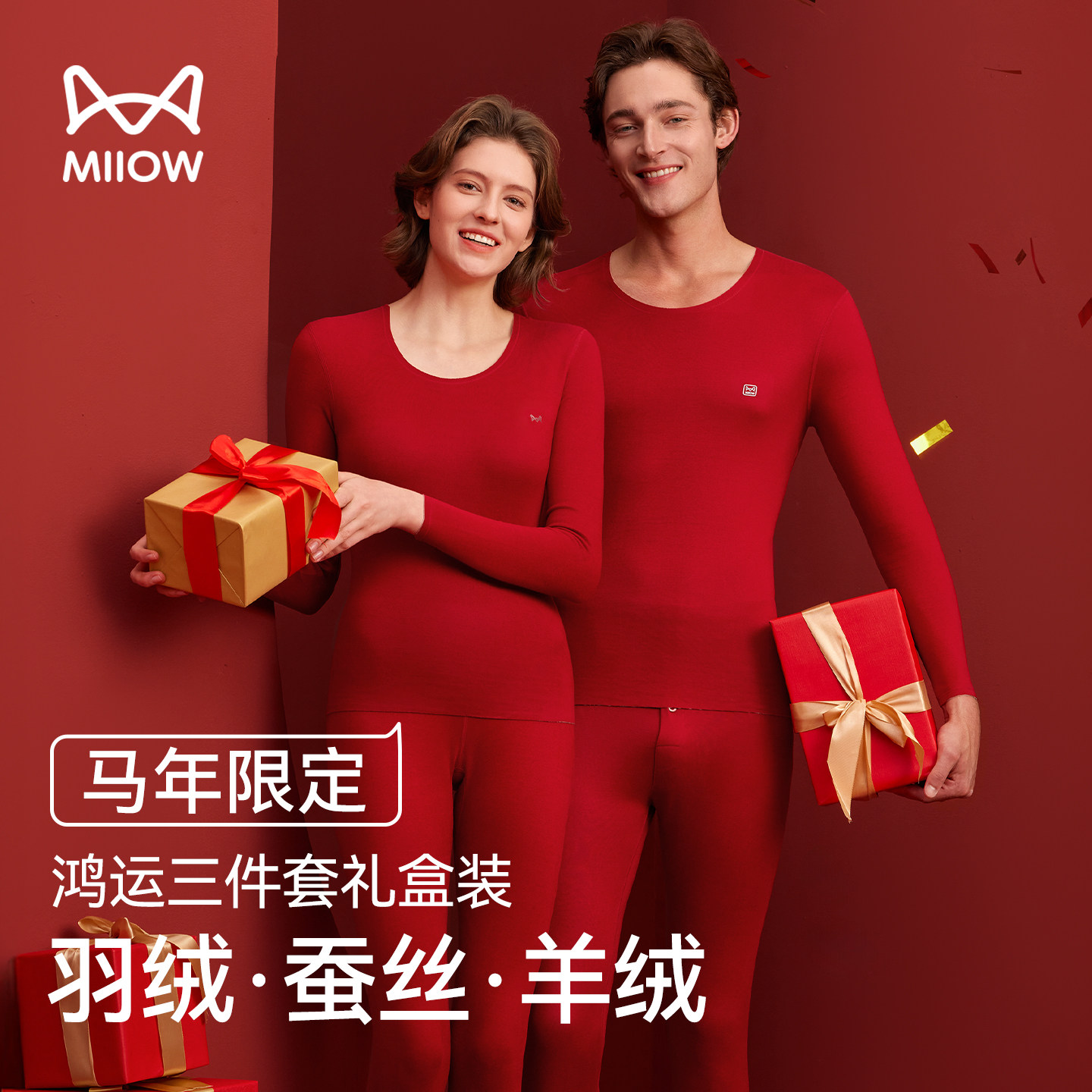 猫人红色本命年保暖内衣套装男女款2026属马无痕贴身打底秋衣秋裤