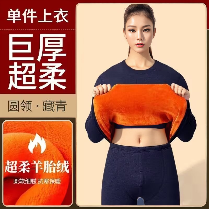 冬季圆领保暖内衣女加绒加厚防寒修身高弹羊羔绒内搭打底秋衣秋裤