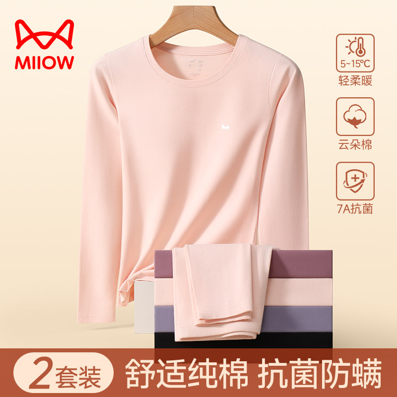 猫人保暖内衣女士纯棉全棉抗菌亲肤透气内穿打底秋衣秋裤套装冬季