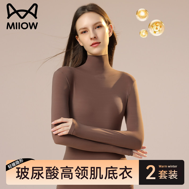猫人超薄肌底衣女高领保暖内衣无痕隐形美肤打底秋衣秋裤套装冬季