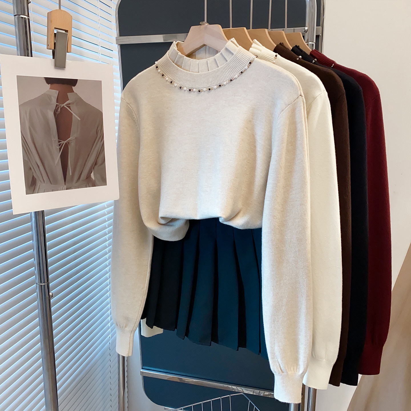 花边半高领毛衣女套头2025秋冬新款上衣外穿针织衫内搭洋气打底衫