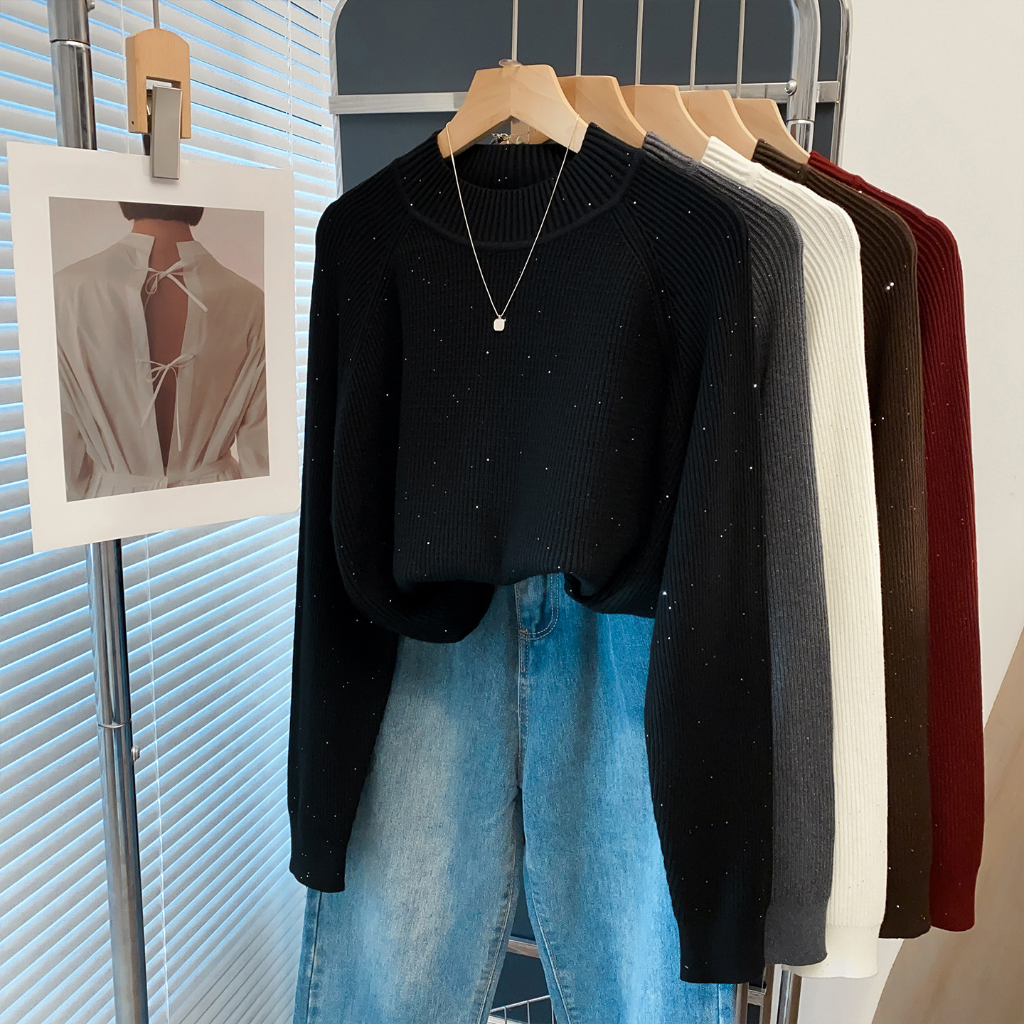 亮片纹理半高领毛衣女套头2025秋冬新款宽松外穿针织衫内搭打底衫