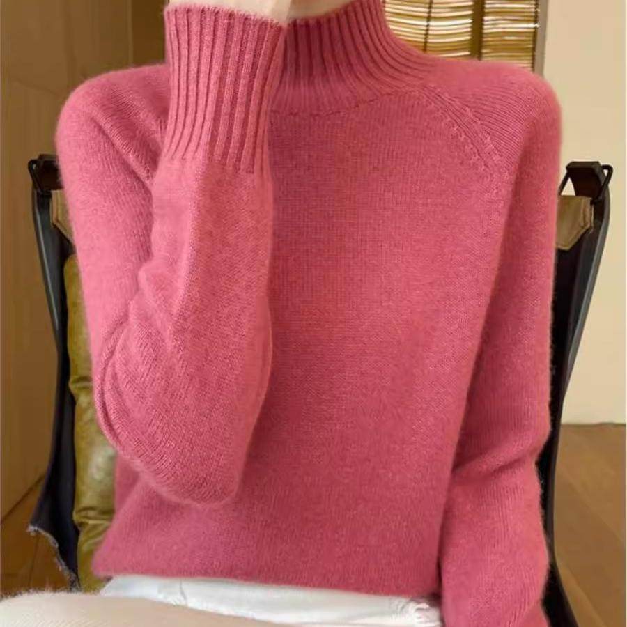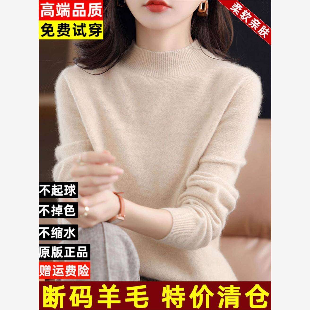 鄂尔多斯市羊毛衫女秋冬新款半高领毛衣女套头宽松羊毛内搭打底衫