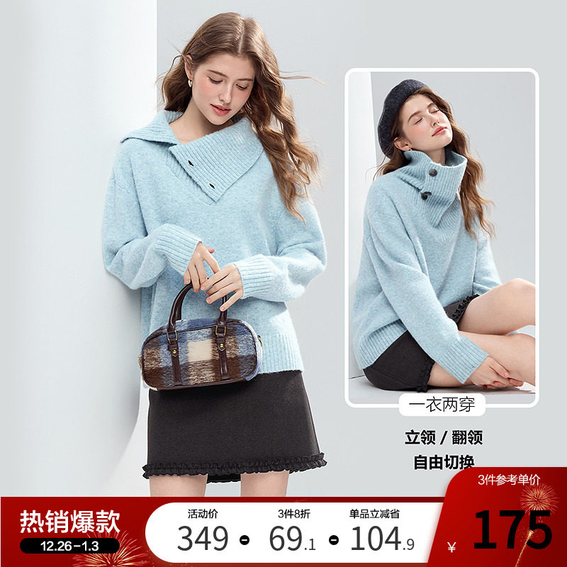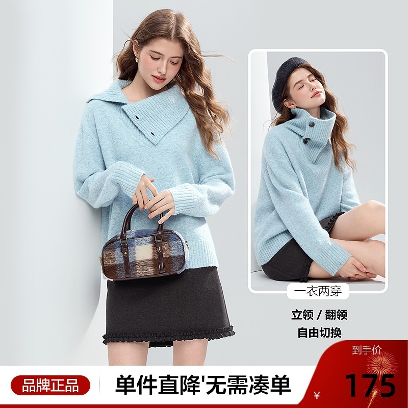 betu百图高级感纽扣高领毛衣女套头2025年冬季新款慵懒风针织衫