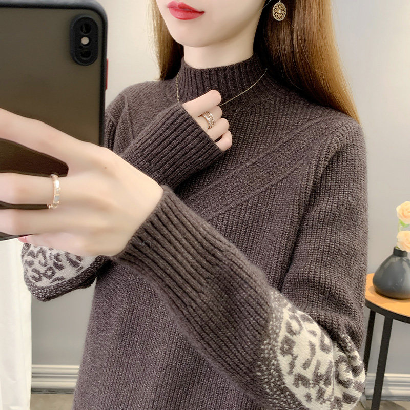 2025秋冬新款半高领毛衣女套头加厚宽松外穿显瘦长袖针织打底衫女