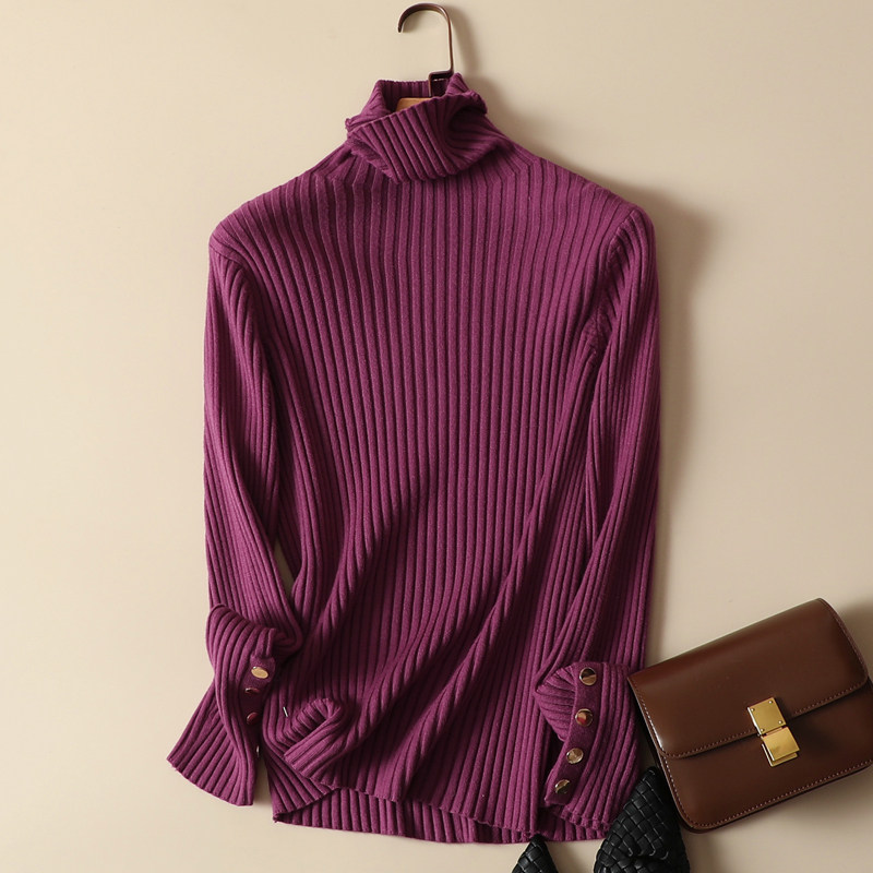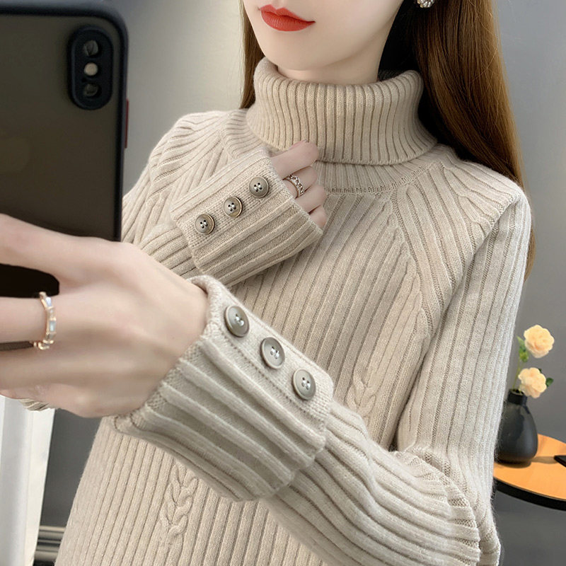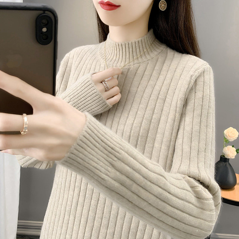 【美女BI备实用款加厚羊毛柔软】坑条显瘦针织衫女半高领套头毛衣