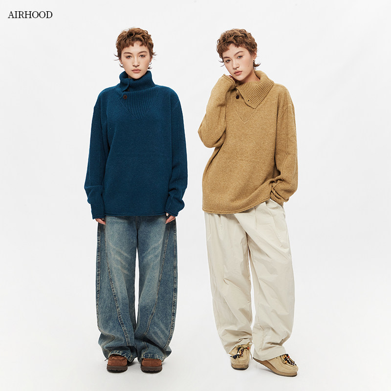 AIRHOOD 欧美2025秋冬季新款高领毛衣女套头宽松慵懒风外穿针织衫