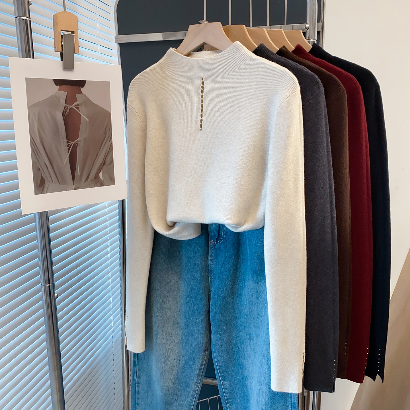 2025秋冬新款半高领羊毛针织打底衫女套头百搭修身设计感内搭毛衣