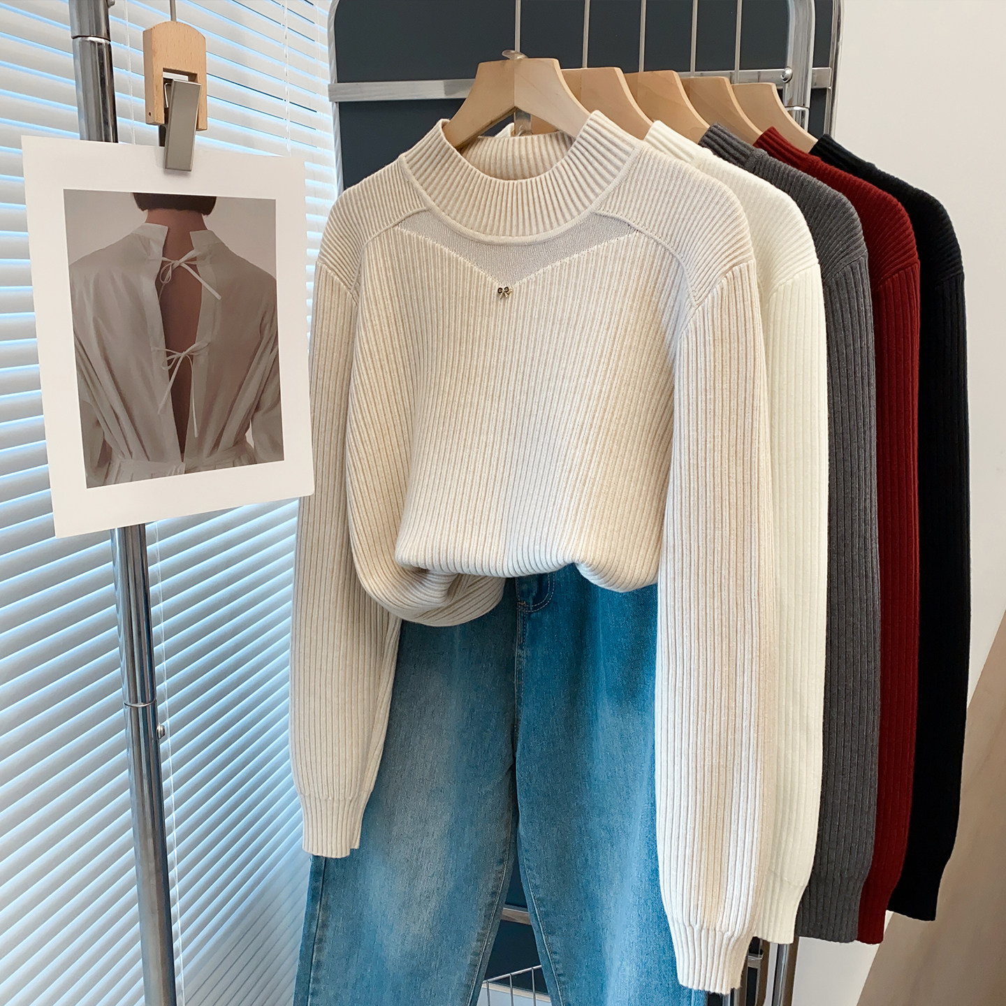 半高领毛衣女套头2025秋冬新款上衣宽松外穿针织衫蕾丝内搭打底衫