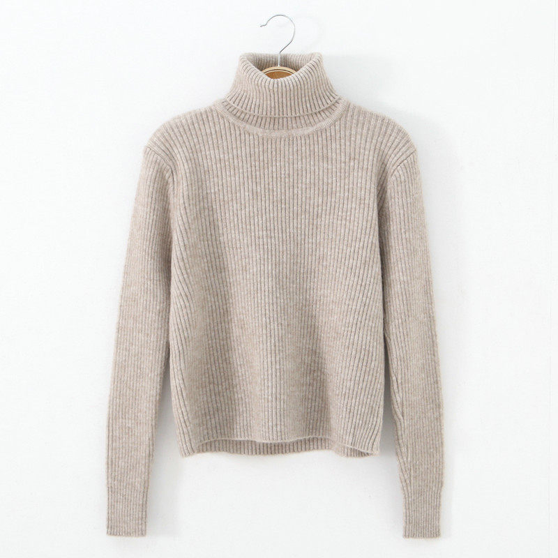 秋冬新款百搭羊毛衫纯色高领毛衣女套头加厚宽松长袖羊针织打底衫