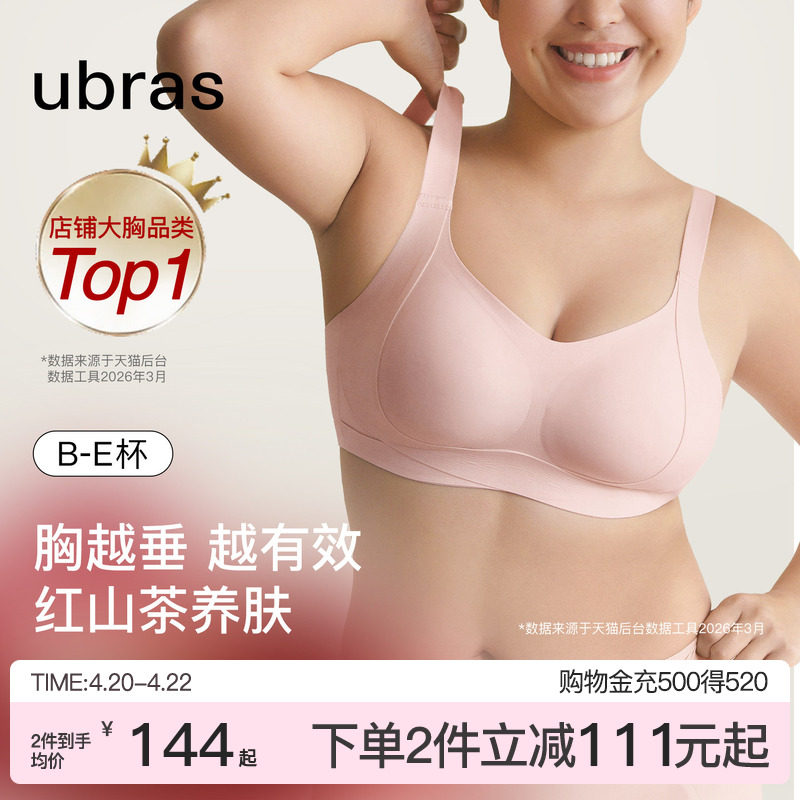 ubras红山茶大胸显小显瘦无痕内衣收副乳防下垂调整型文胸罩套装