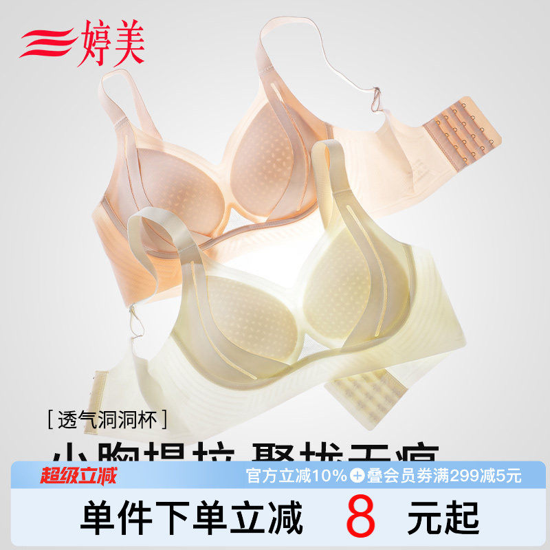 婷美夏透气洞洞杯提拉聚拢小胸文胸收副乳调整型防垂薄款无痕内衣