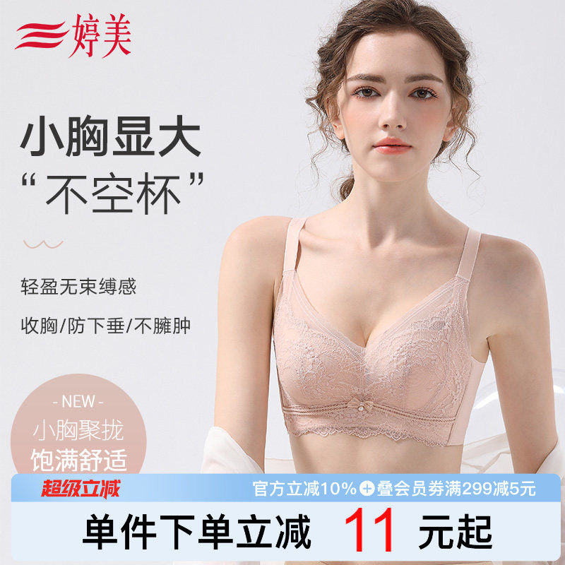 婷美院线款小胸聚拢显大内衣提拉防垂调整型收副乳软支撑蕾丝文胸