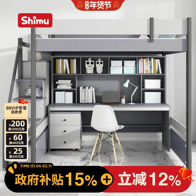 上床下桌组合床小户型床高低床带书桌床儿童床衣柜一体式上铺下桌