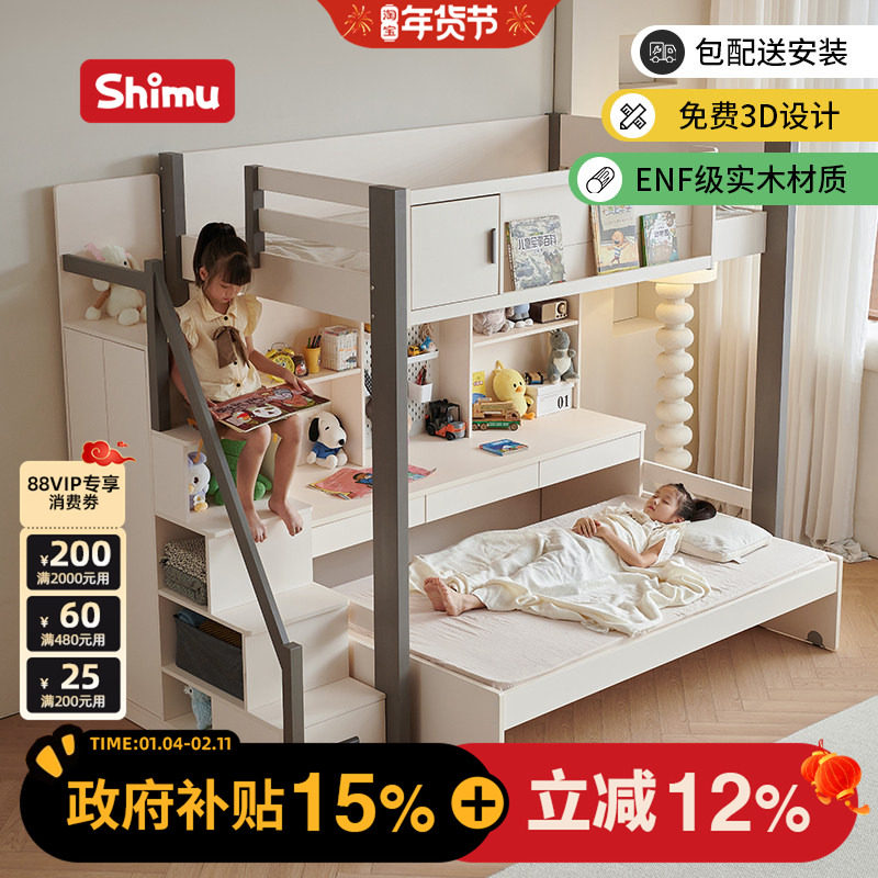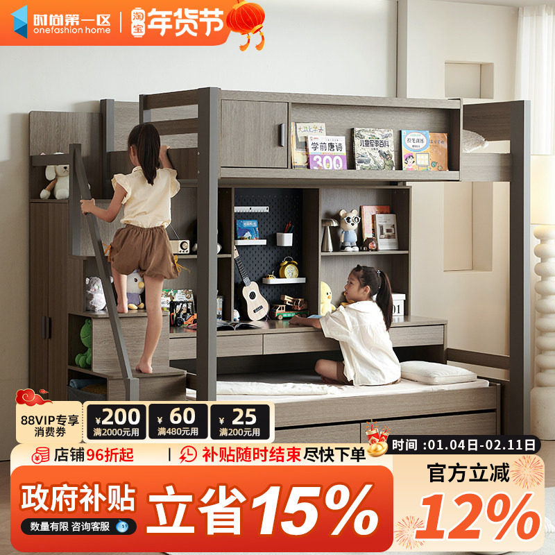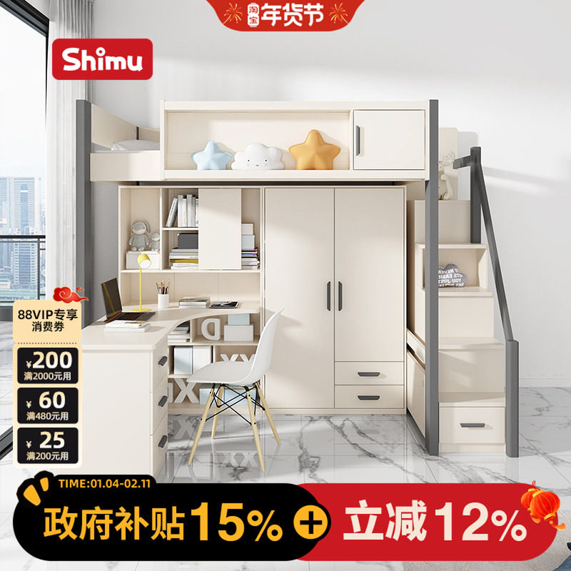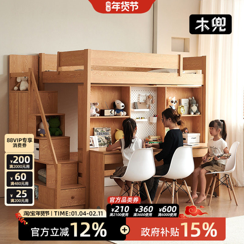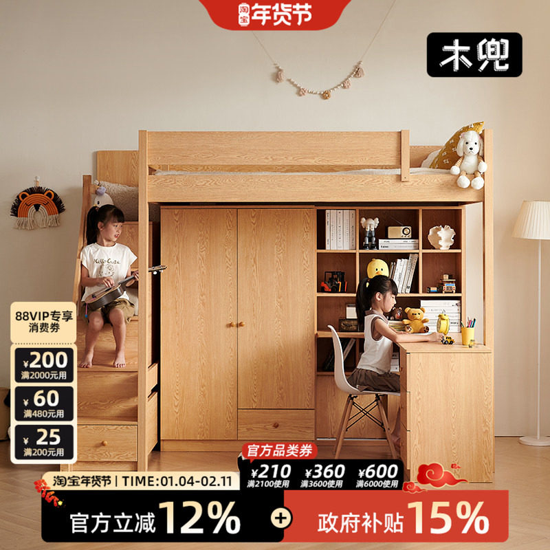 木兜家具集结号儿童床上床下桌组合床书桌衣柜一体实木高低双层床